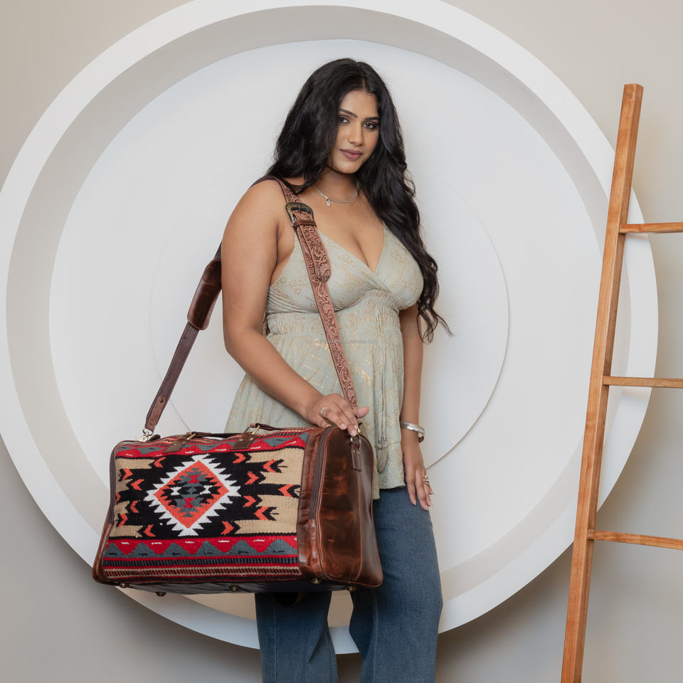 Product name:Hand Tooled Saddle Blanket Duffle Bag