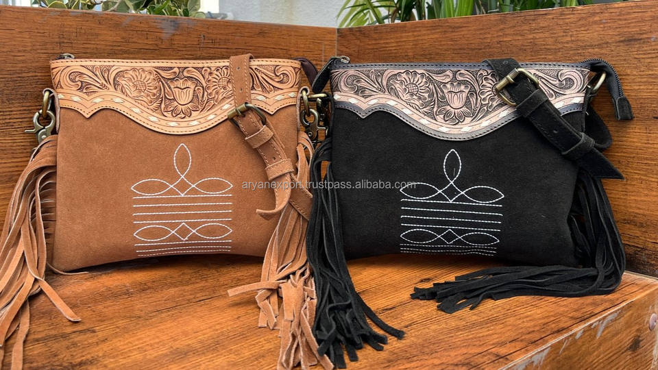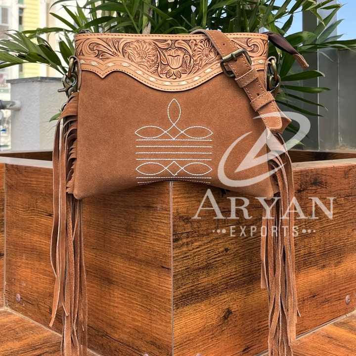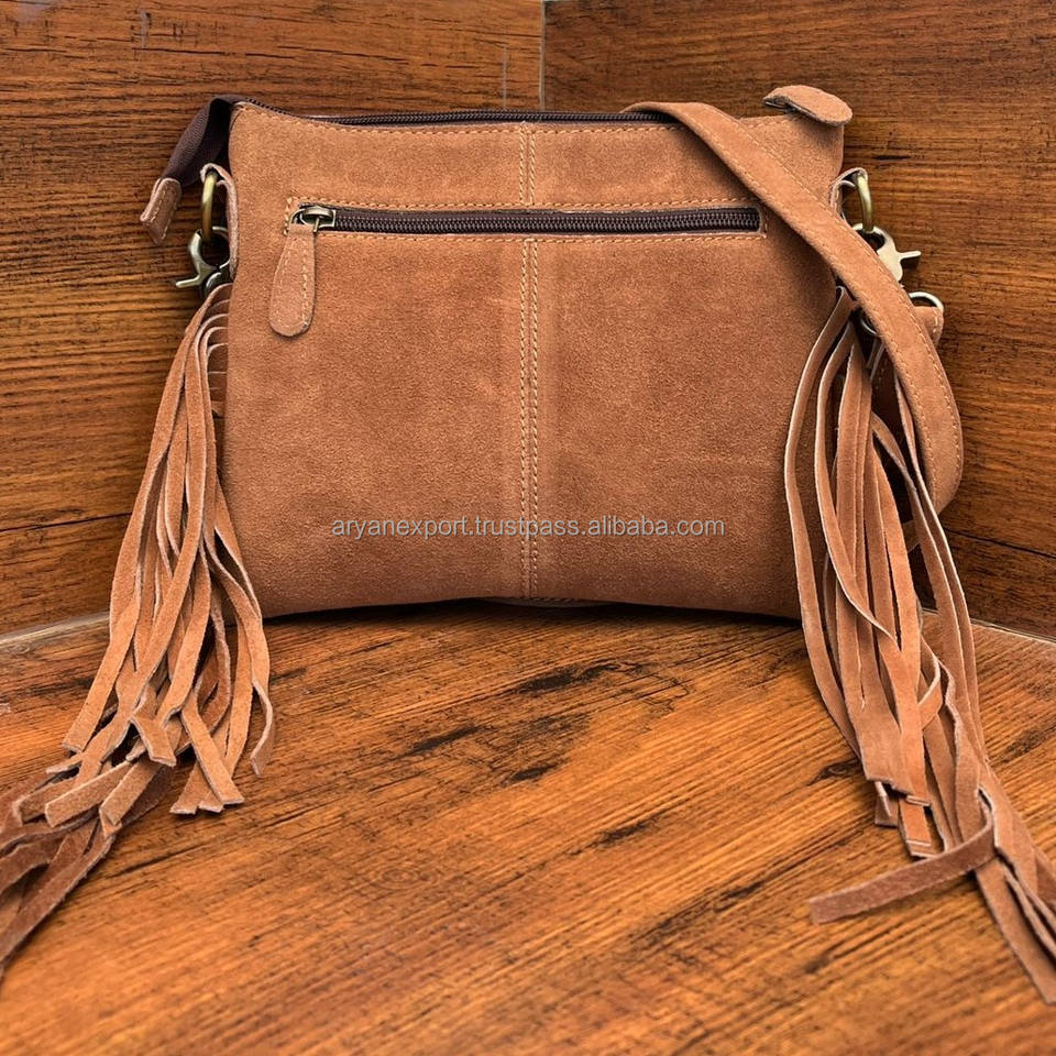 Product name:Hand Tooled Suede Leather Fringe Purse