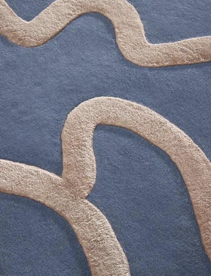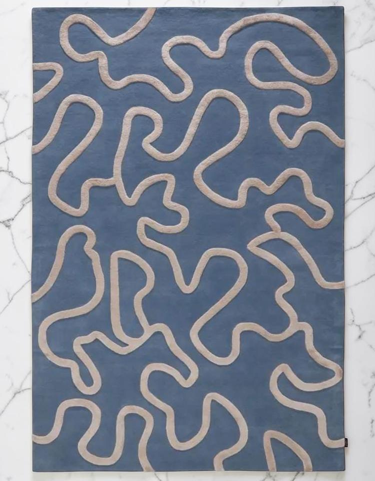 Hand Tufted Low Pile Abstract Wool Rug Anti-Bacteria PET Friendly Eco-Friendly Non-Slip Thin Modern Design Latex Backing for