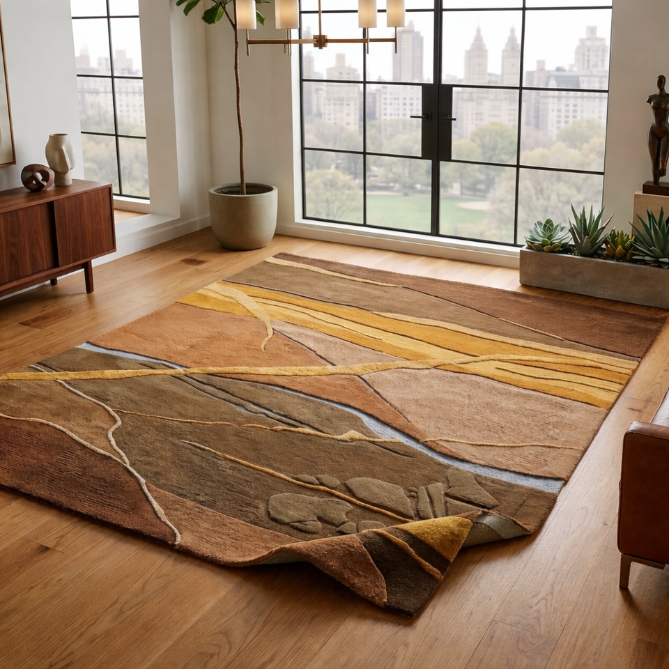 MAA&company Hand Tufted Modern Wool/Silk Medium Pile Cushioned Non-Slip Eco-Friendly Abstract Solid Color Wool Backed Area Rug