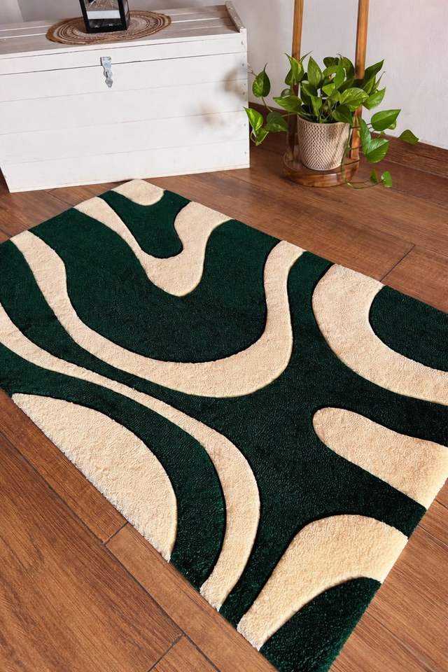 Hand Tufted Wool/Silk Modern Abstract Carpet Wave Pattern Contemporary Area Rug Reversible & Eco-Friendly PET Friendly