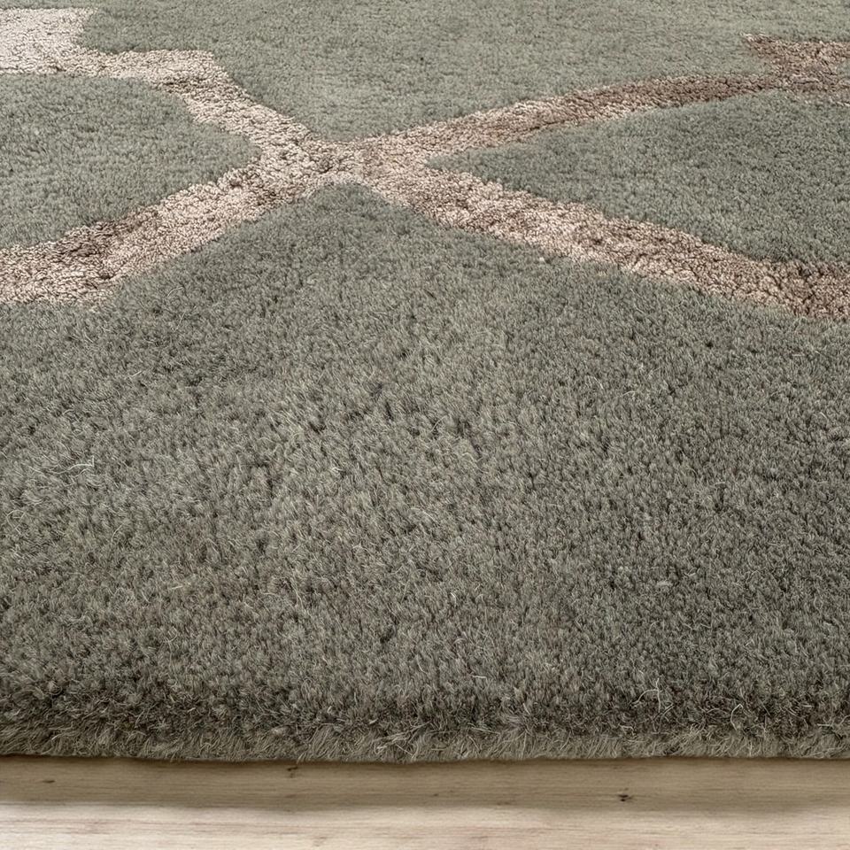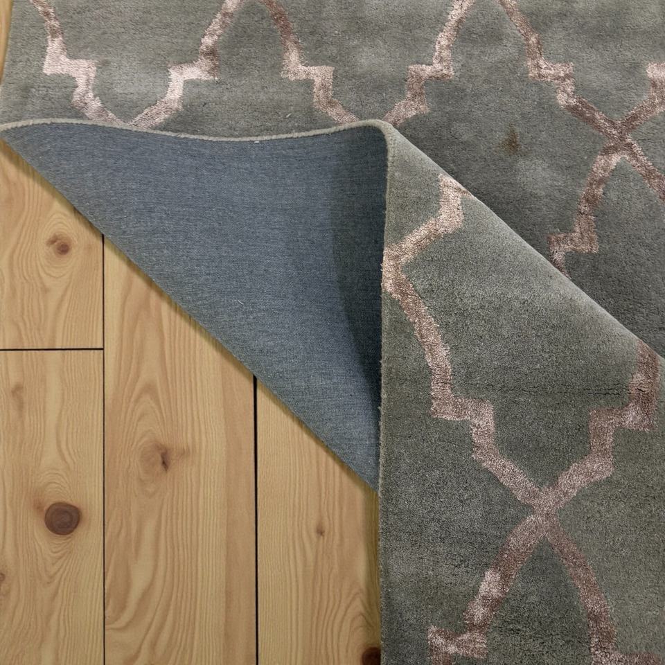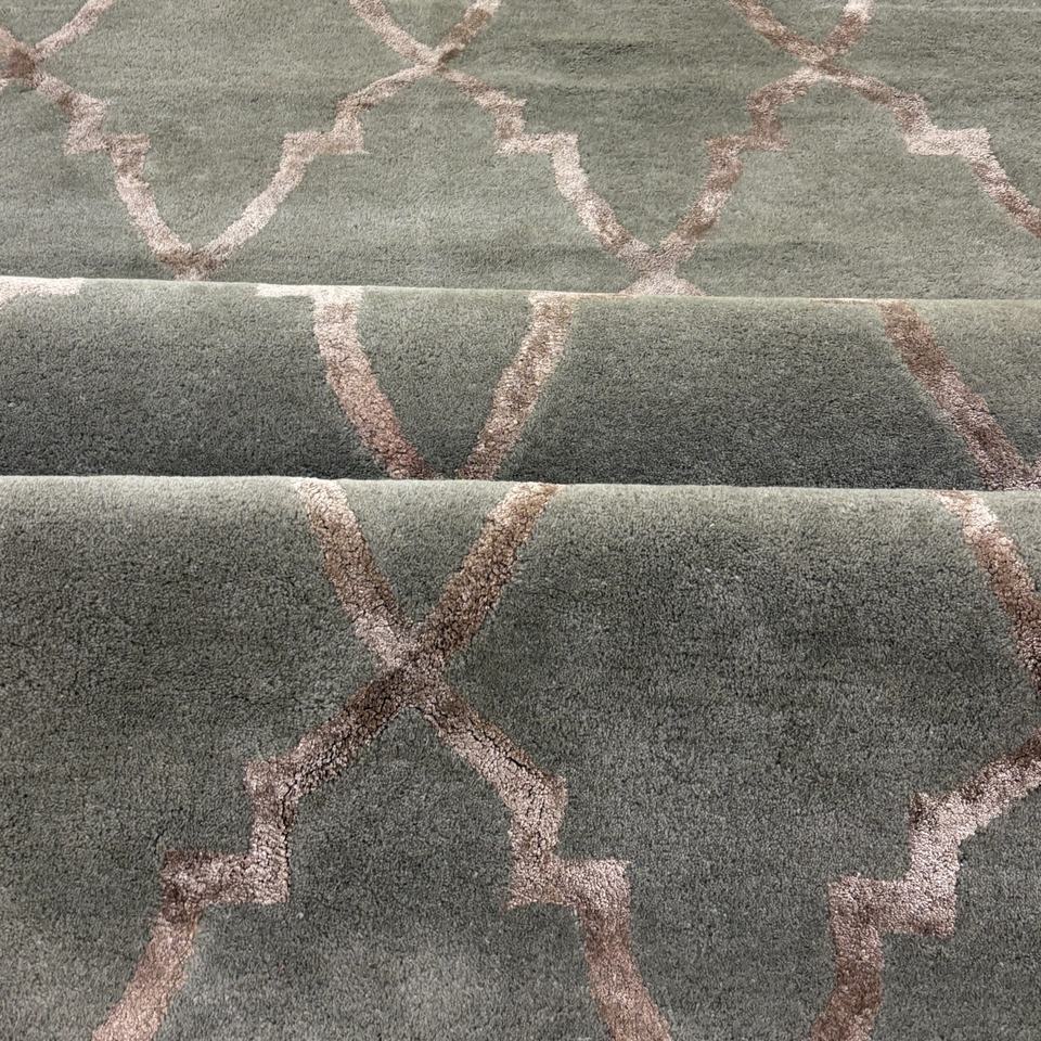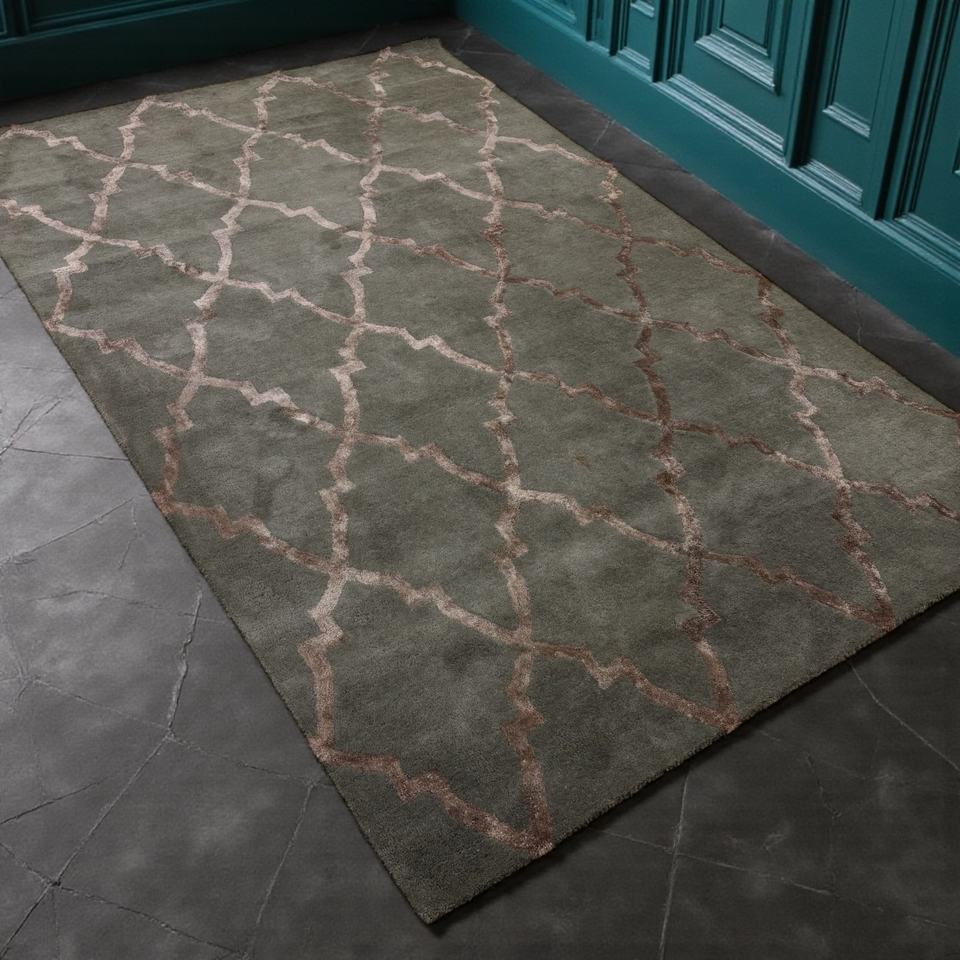 Hand-Tufted Wool/Silk Rug Sage Green Rose Gold Abstract Pattern Eco-Friendly Low Pile Modern Trellis Rug Seafoam Green