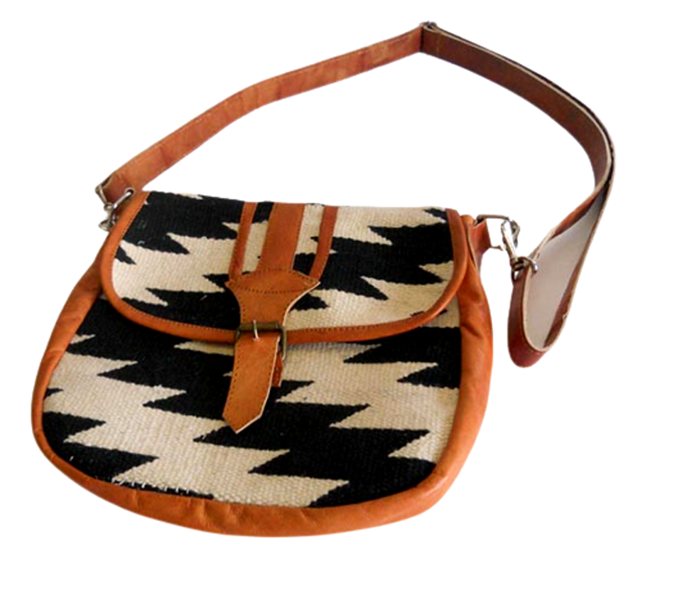 Hand Woven Cotton Kelim Dhurries Hand Bag With Vintage Handmade Kilim Leather Handle Tote Bag