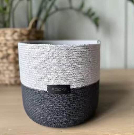 Hand Woven Cotton Rope Basket Attractive Black & White Color Storage for Toys & Baby Nursery Basket With Lid