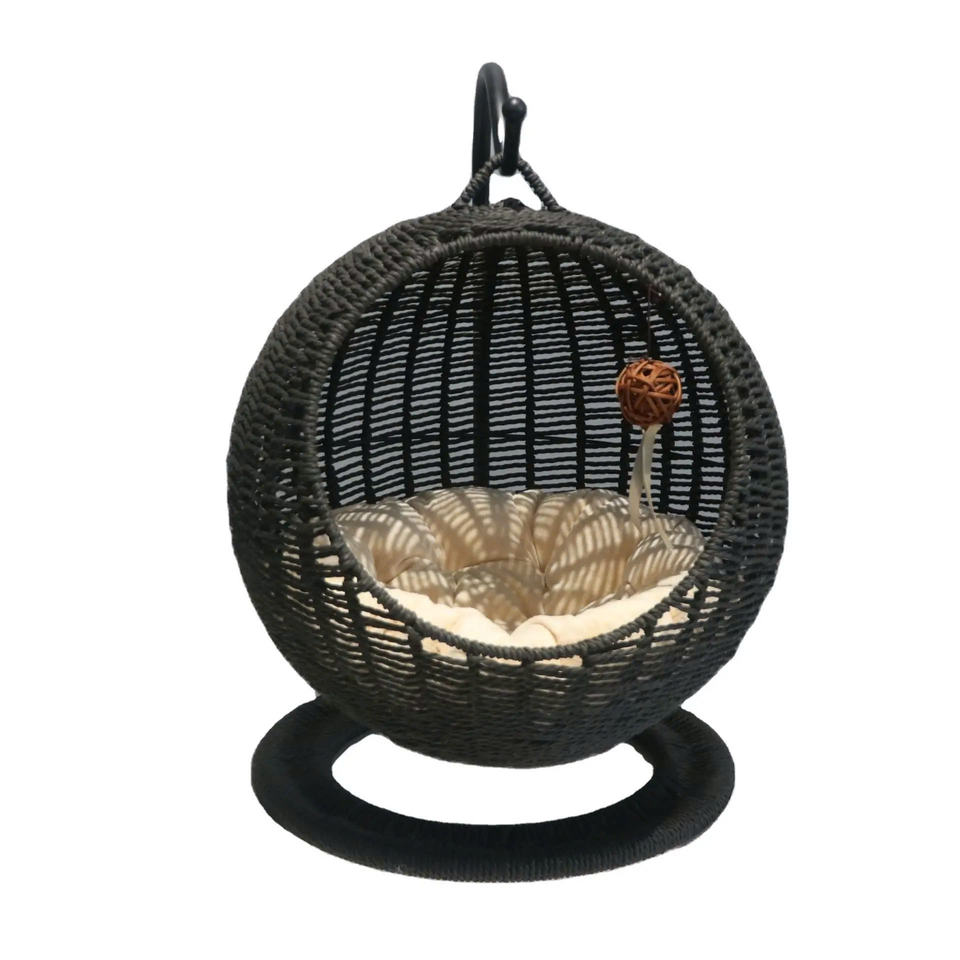 Hand Woven Modern Luxury Cat Bed Hanging Basket with Swinging Nest and Removable Cushion Eco-Friendly & Waterproof