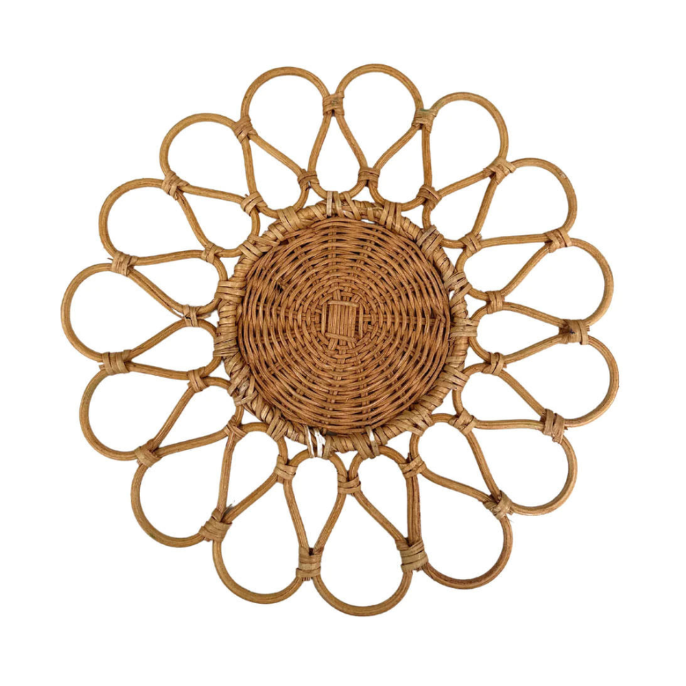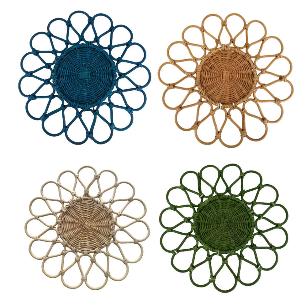 Hand Woven Natural Bamboo Rattan Flower Plate Non-slip Decorative Kitchen Table Mat Waterproof Coaster Wicker Made in Viet Nam