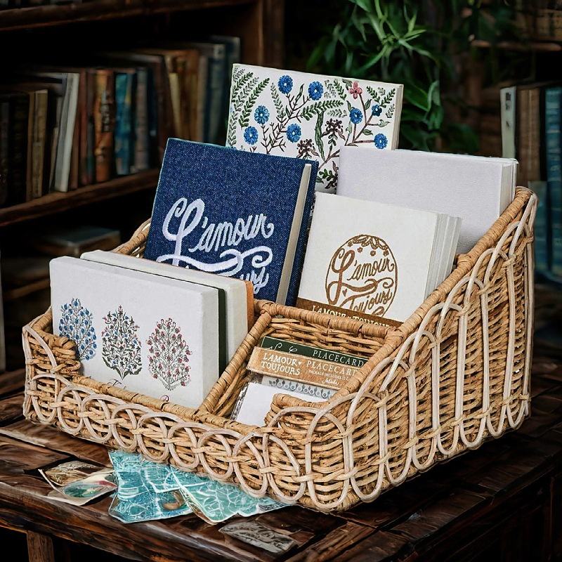 Hand-Woven Rattan Storage Basket Office Desk Storage Box Straw Basket with No Installation Required