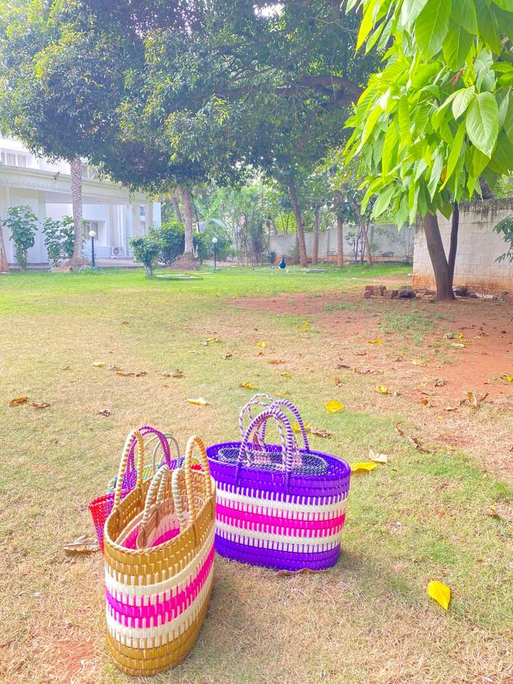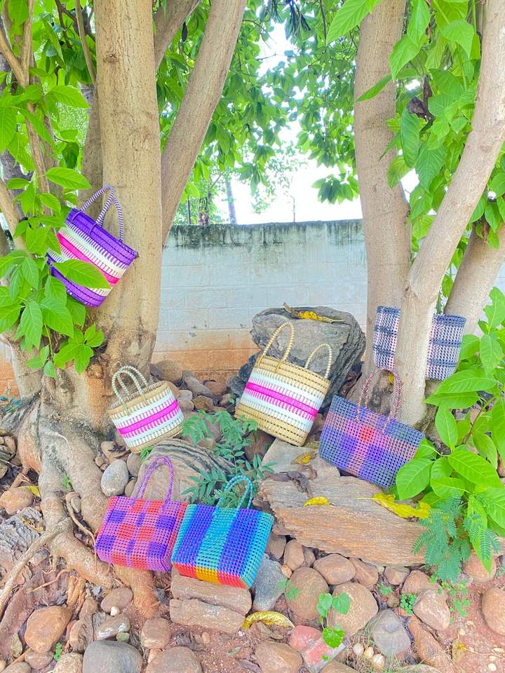 Hand Woven Recycled Nylon Eco-Friendly Reusable Zipper Shopping Bag Striped Beach Bags Made in India Custom Logo Fashion Style