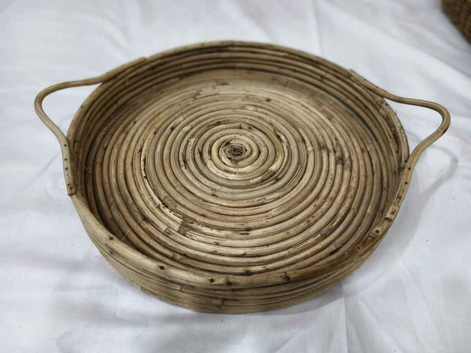 Hand Woven Round Shape Rattan Serving Tray Fruit Display Basket Tray Restaurant Hotel Ware Supplies Exclusive Style