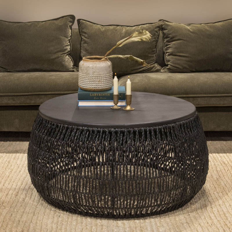 Hand-Woven Seagrass and Pine Wood Round Coffee Table