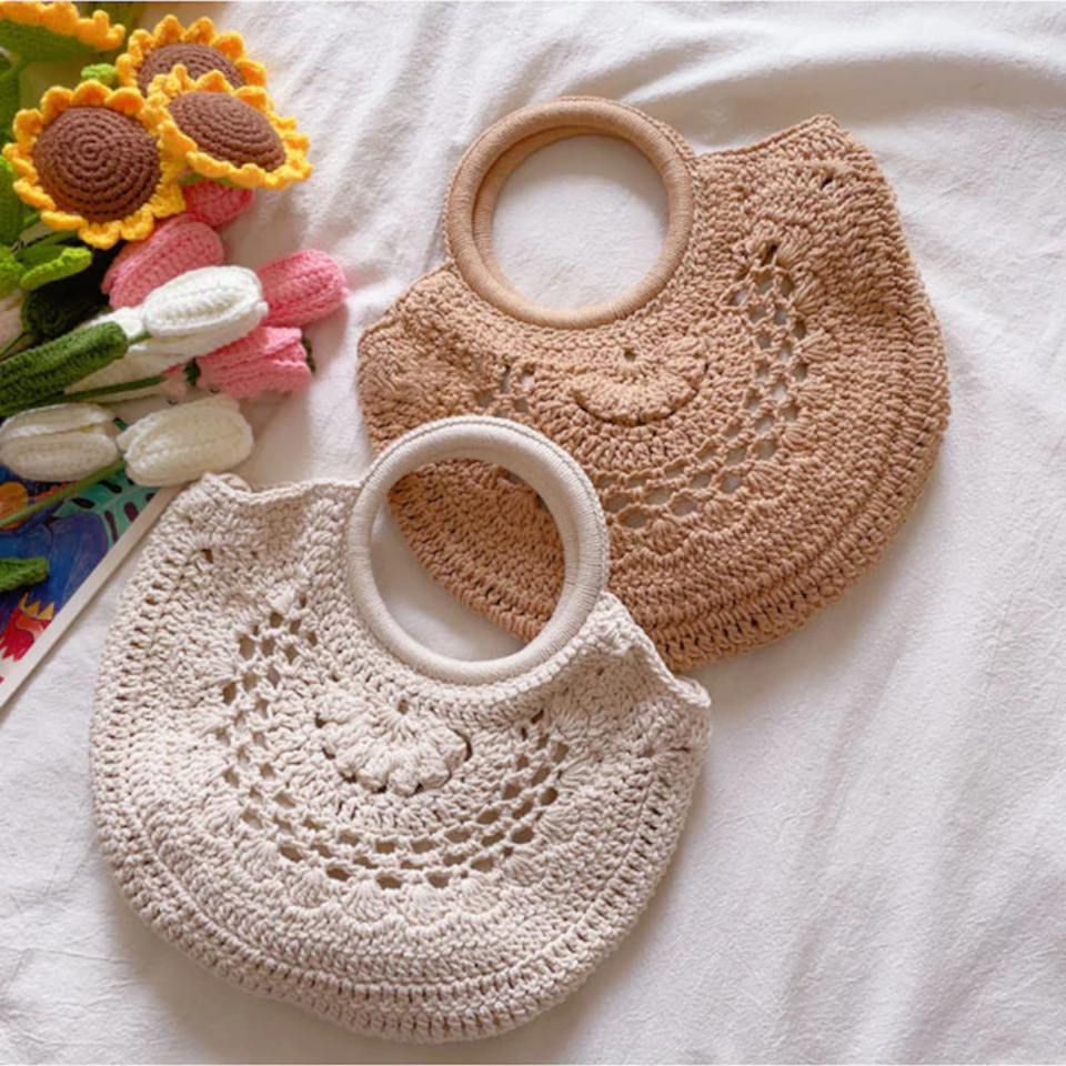 Hand Woven Straw Bag Wholesale Hollow Fashion Shoulder Women Paper Rope Casual Large Straw Beach Bag Made in Vietnam