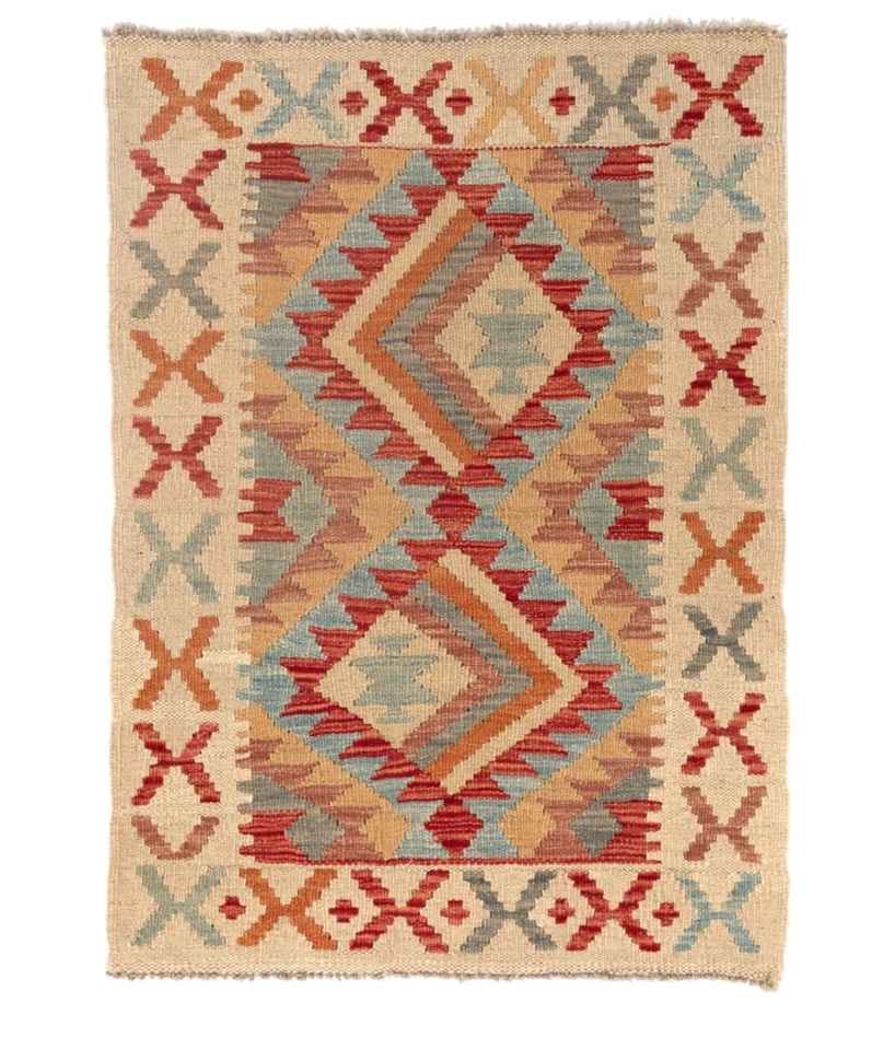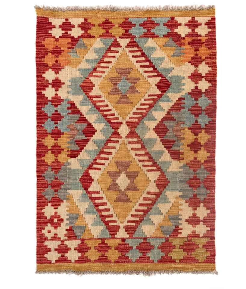 Hand Woven Wool Kilim Rug – Ethnic Geometric Flat Weave Carpet 100% Wool Handmade Kilim Rug | Flatwoven Tribal Designer Floor