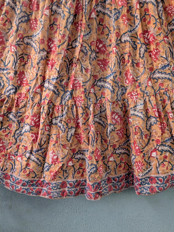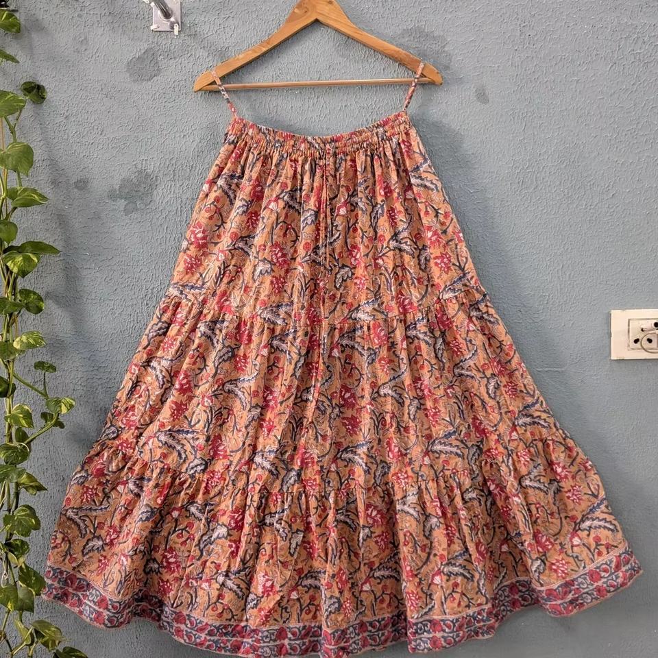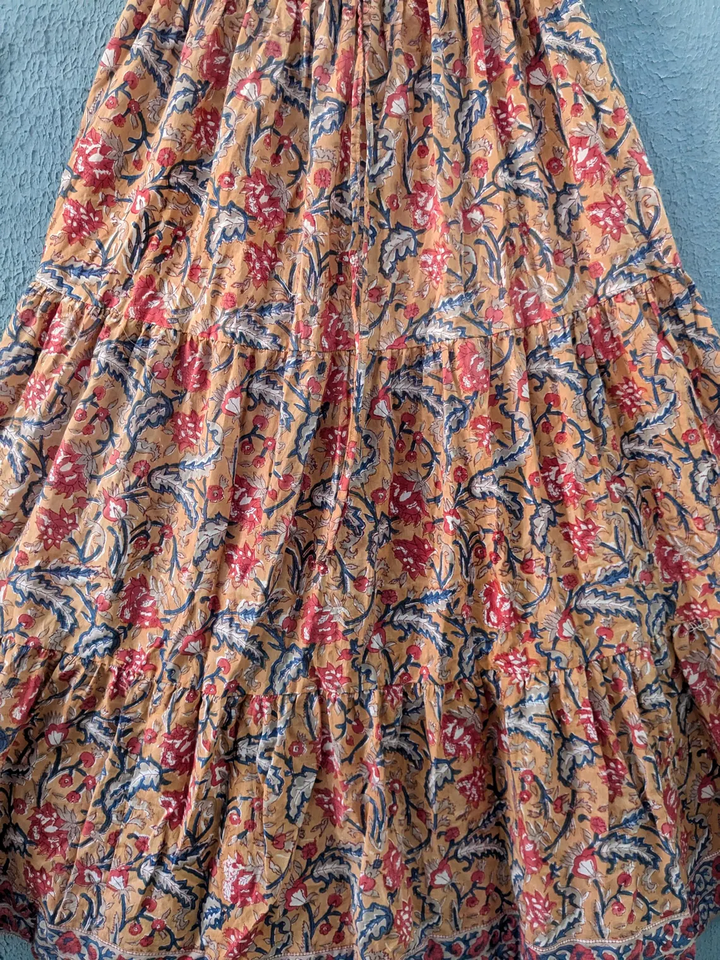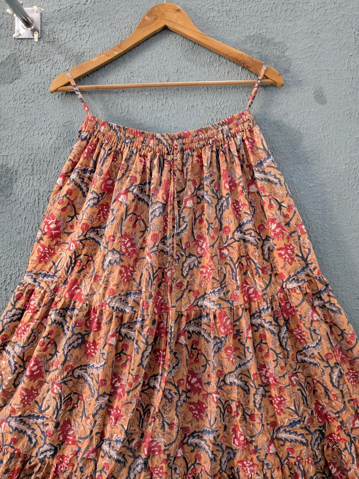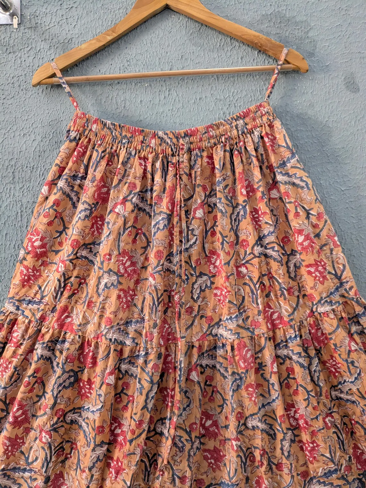 Embrace effortless elegance with this handcrafted floral tiered skirt soft breathable fabric elasticated waistband