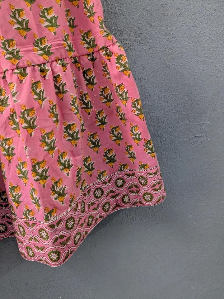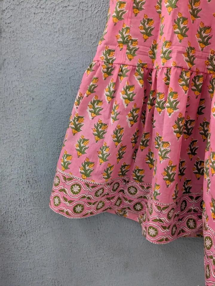 Blush Pink Floral Tiered Skirt with Elastic Waist Lightweight Cotton Boho Long Skirt for Women Hand Block Inspired Print