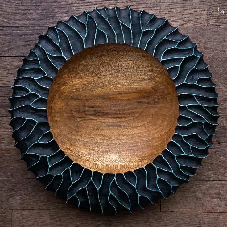 Hand carved walnut wood bowl sculpted black rim decorative centerpiece artistic wooden fruit bowl rustic modern table decor