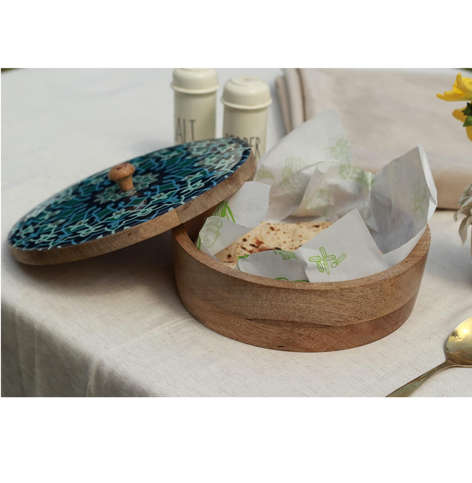 Hand carved yellow wooden hot pot chapati box rice box keeps food warm & fresh casserole cookware for home kitchen restaurant