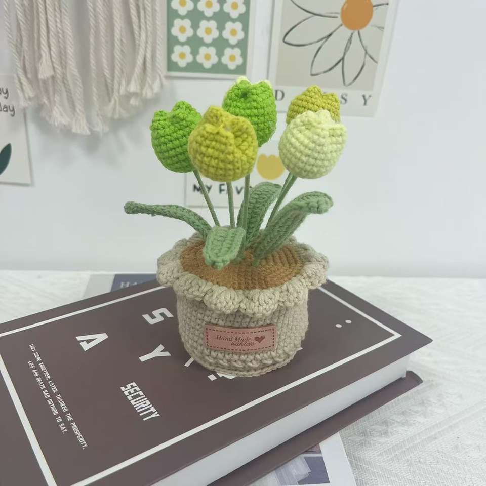 Hand-crocheted woolen flower potted home decoration piece, simulated tulip woolen knitted flower creative decoration piece