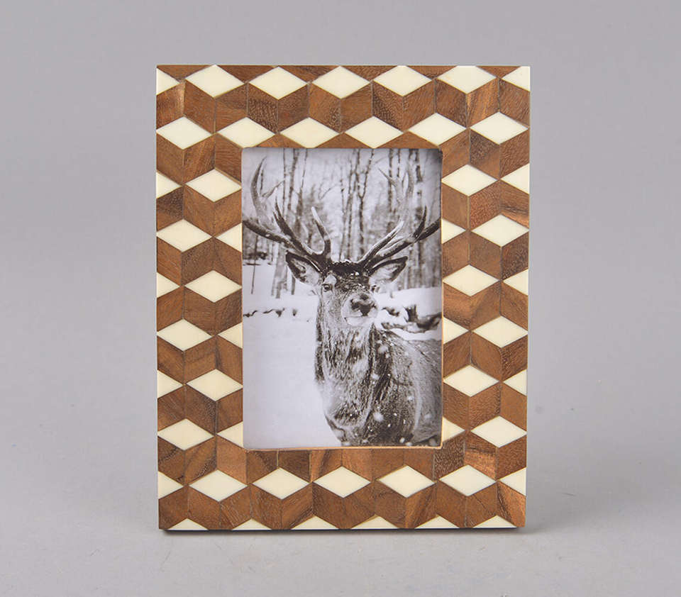 Luxury Handmade Bone Horn MDF Photo Frame Brown Ivory Color Contrast Geometric Pattern High Quality Finish Contemporary Home