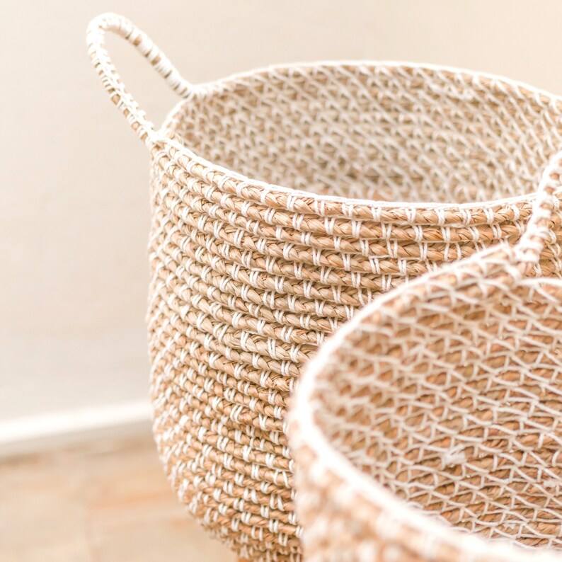 Hand-knitted Natural Water Hyacinth Straw Wicker Woven Storage Organized Handle Baskets
