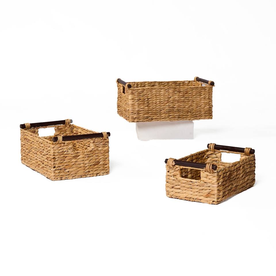 Hand-Knitted Natural Water Hyacinth Straw Wicker Storage Baskets Organized Handle Price