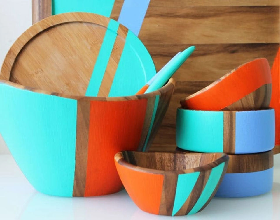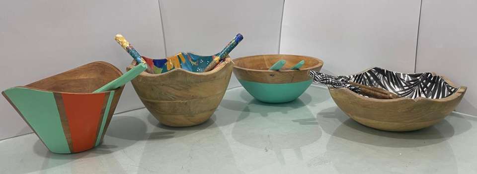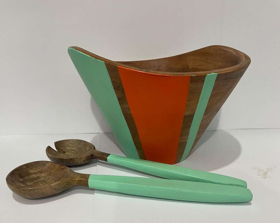 Handmade Cone Wooden Salad Serving Bowl with Matching Server Spoons for Party Snacks and Fruits Spruce Exports