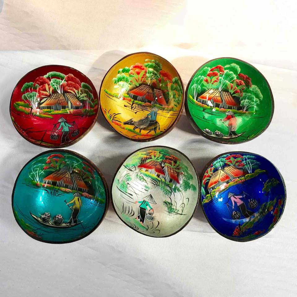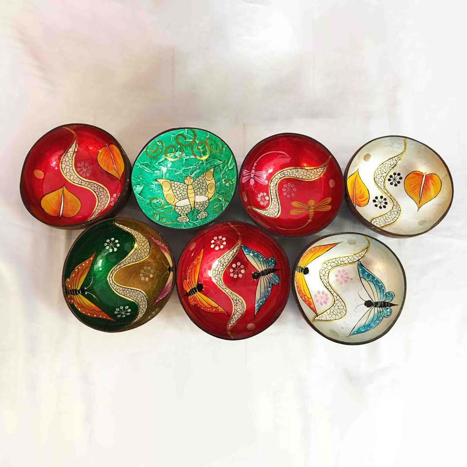 Hand Painted Decorative Mother of Pearl Lacquered Coconut Shell Bowl Luxury Table Kitchen Home Decoration