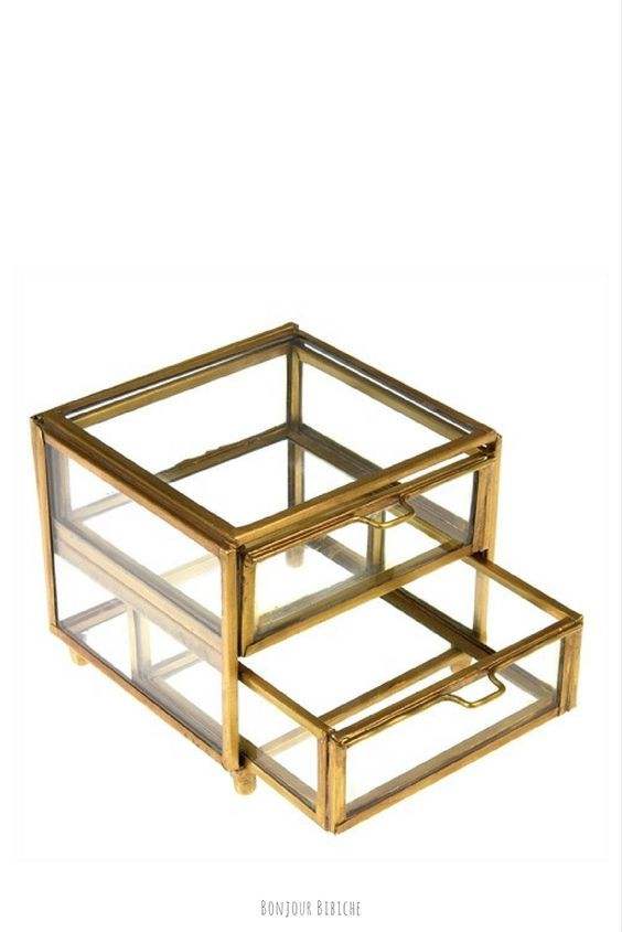 Hand polished brass and glass jewelry box with aesthetic design ideal for displaying jewelry accessories in an elegant way
