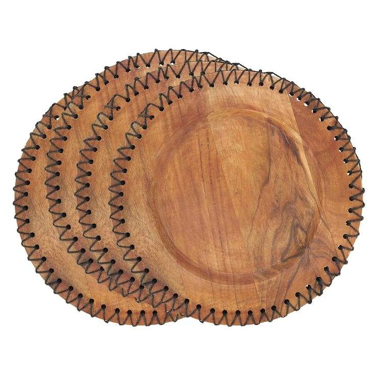 Hand sculpted walnut wood charger plate organic carved rim round rustic wooden dinner plate art serving platter decorative