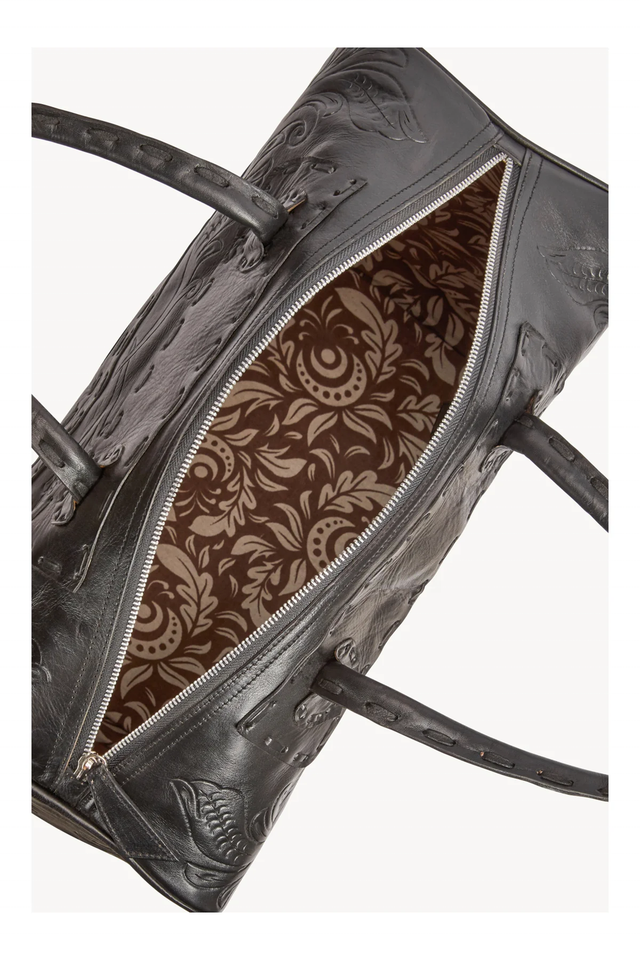Hand-tooled Rose Design on Hand-painted Large Rose Overnight Bag Black/luggage Style