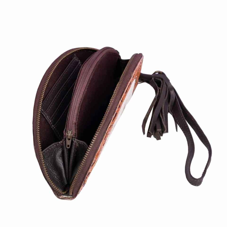 Handtooled Genuine Cowhide Half Circle Wallet Handmade Card Cash Slots Casual Zipper Closure Canvas Lining Handbags Product