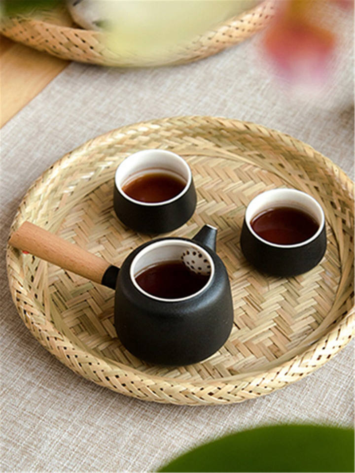 Round Bamboo Storage Basket Hand-Woven Rattan Wicker Platter Tray for Home Decor