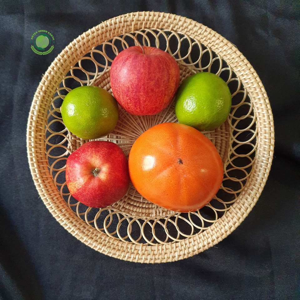 Hand woven rattan, bamboo, water hycinth, seagrass basket for holding bread and fruit, objects. Fashionable design