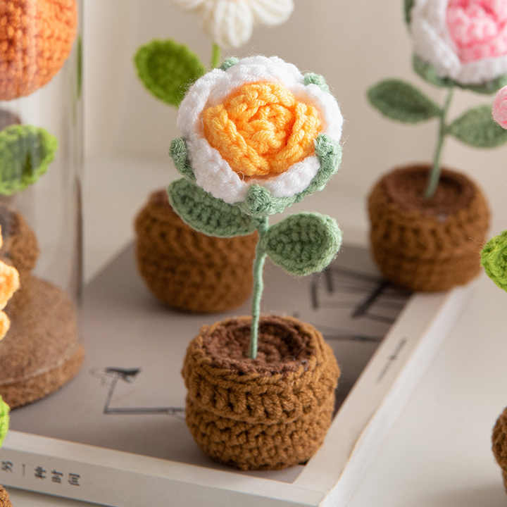 Hand-woven rose wool crocheted sunflower Valentine's Day simulation flower pot planting finished flower ornaments wholesale