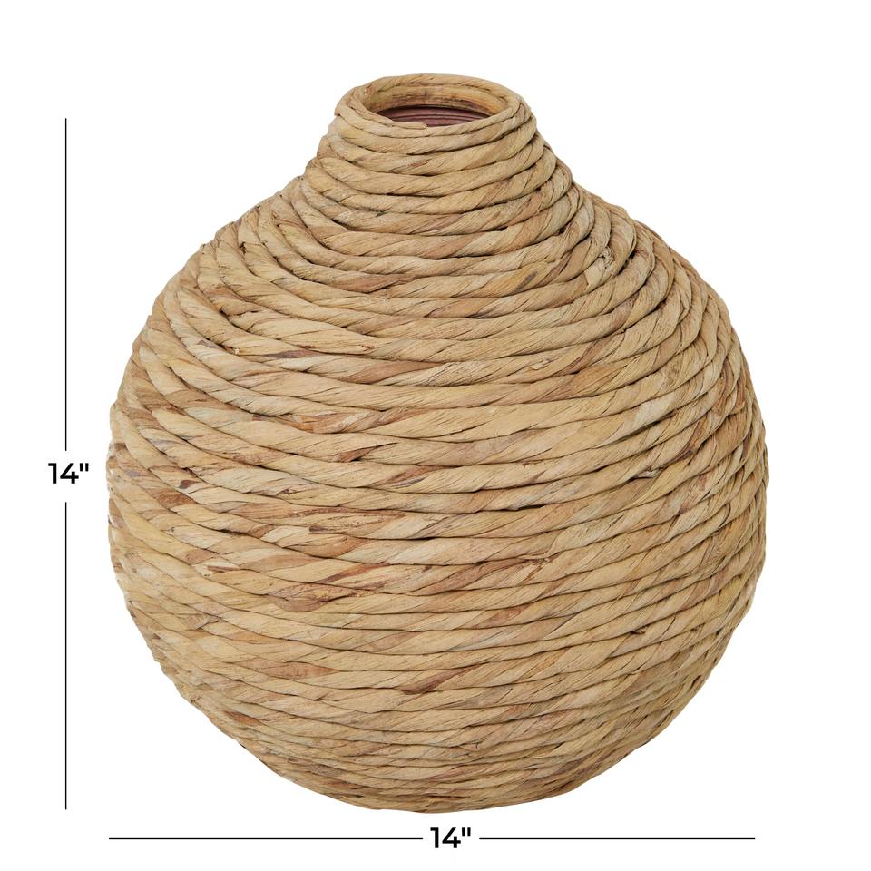 Size: D14 x H14 inch:Hand woven vase made of water hyacinth