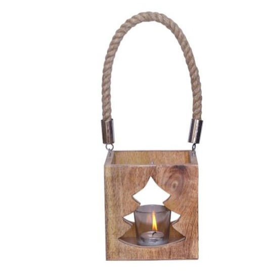 HandMade Deer Cutting Wooden Christmas Double Candle Votive With Rope Handle Unique Design Indoor & Outdoor Decorative Product
