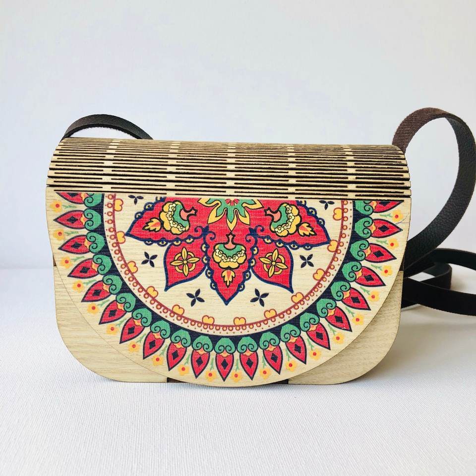 HandPainted Wooden Clutch Purse Bag Summer Boho Bag by Artisans
