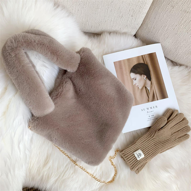 Canvas Letter Pattern Plush Faux Mink Handbag for Female Crossbody Shoulder
