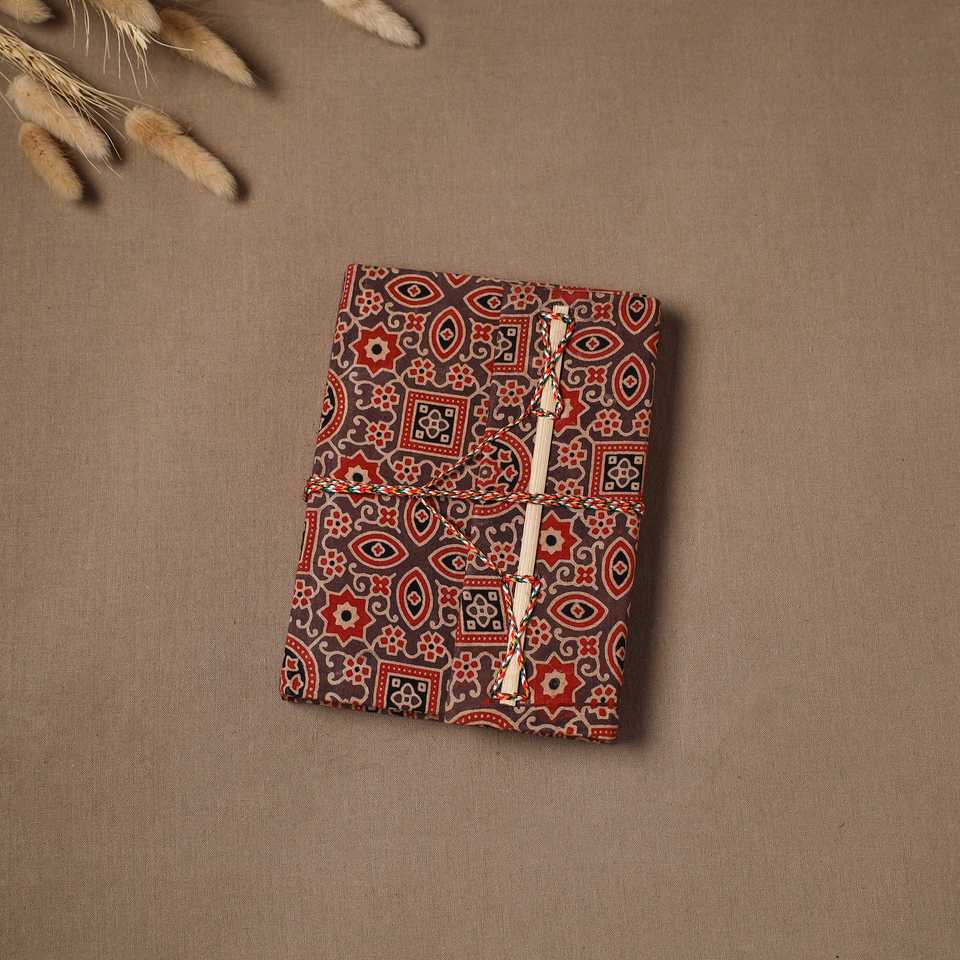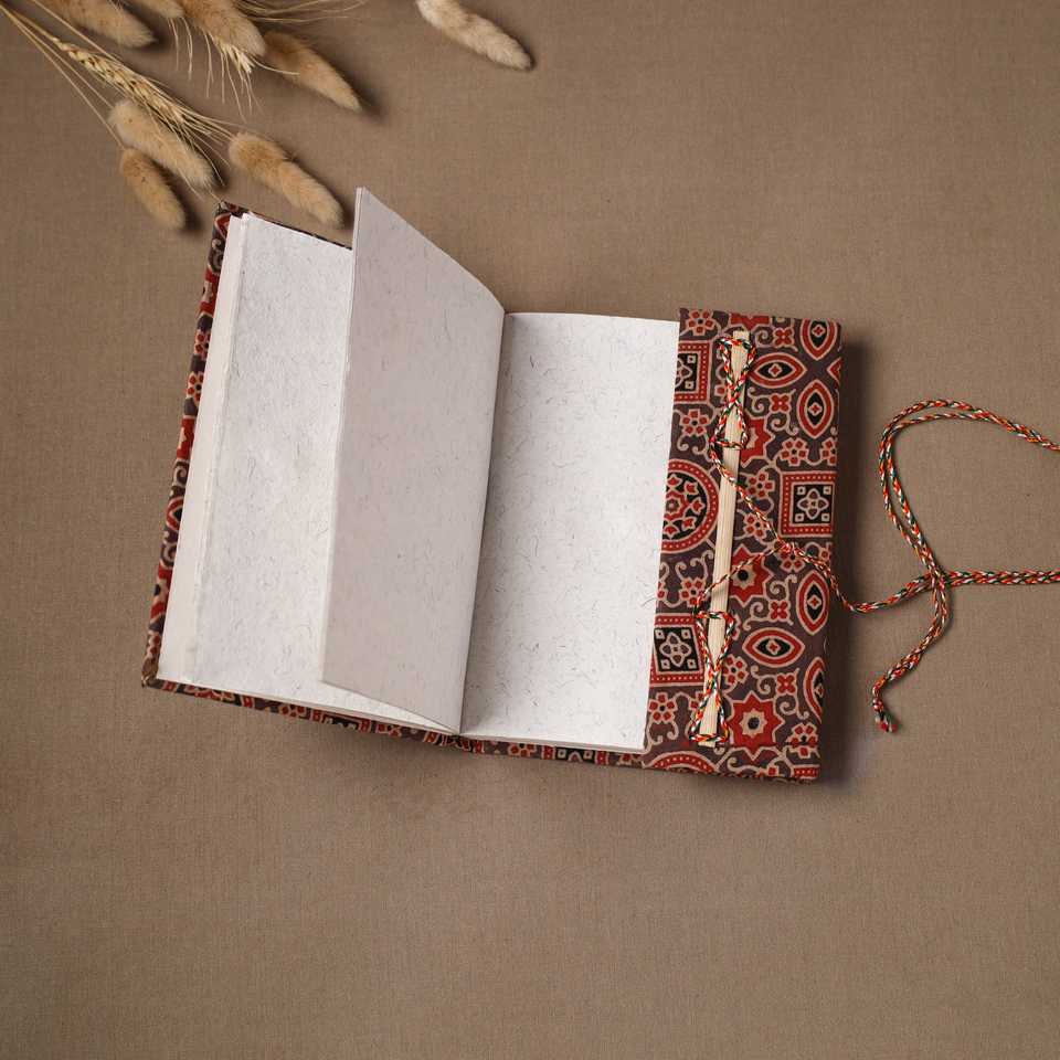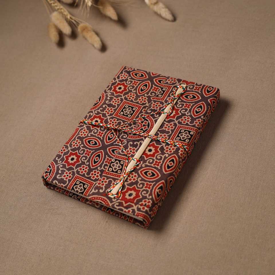 Handblock Ajrakh Fabric Notebook Thread Lock Closure Handmade Paper Journal Diary Ethnic Cloth Cover Travel Sketchbook Gift Note