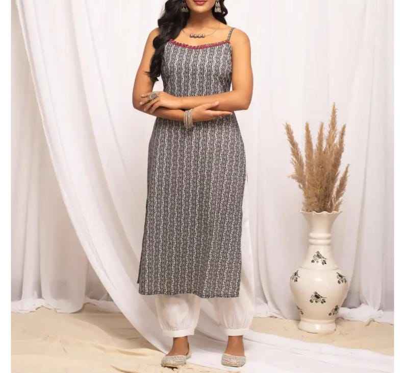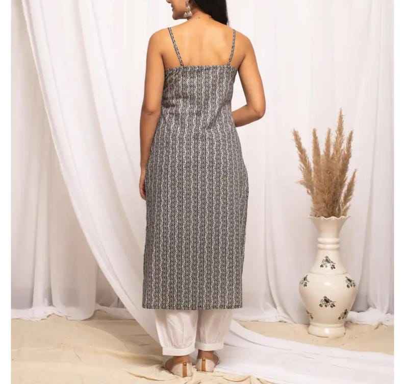 Handblock Black Cotton Kurti Ethnic Sleeveless Kurta For Women Boho Indian Summer Tunic Top