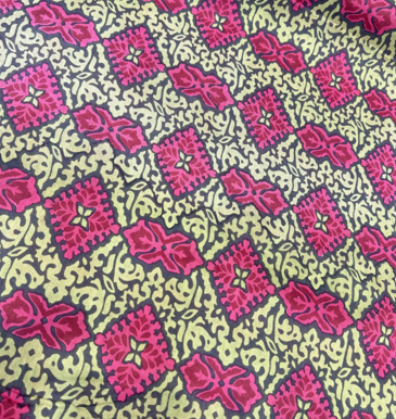Handblock Cotton Voile Fabric 44" Wide Trellis Print Magenta Pink Tiles Green Vines Muted Base Sewing Decorative Purposes