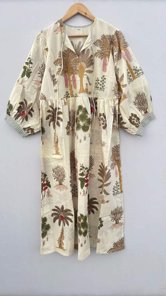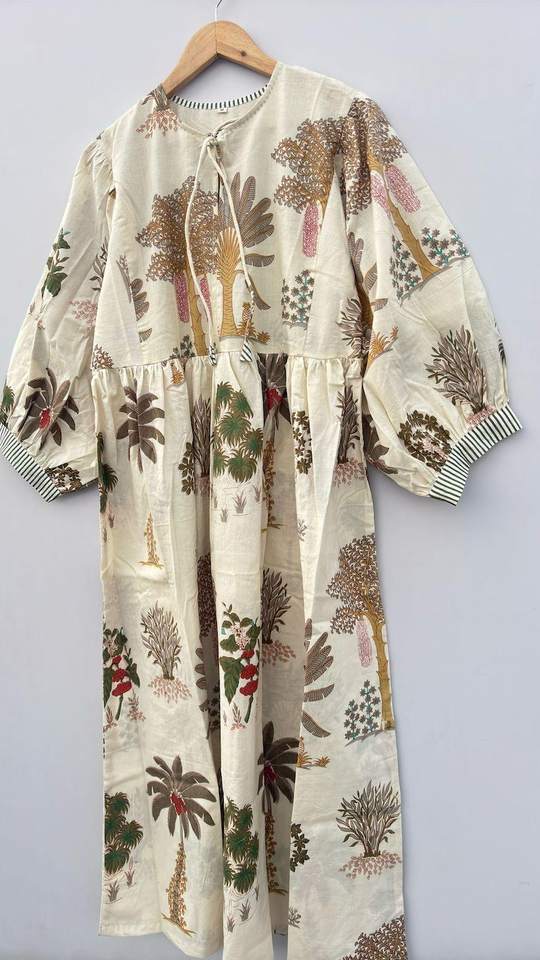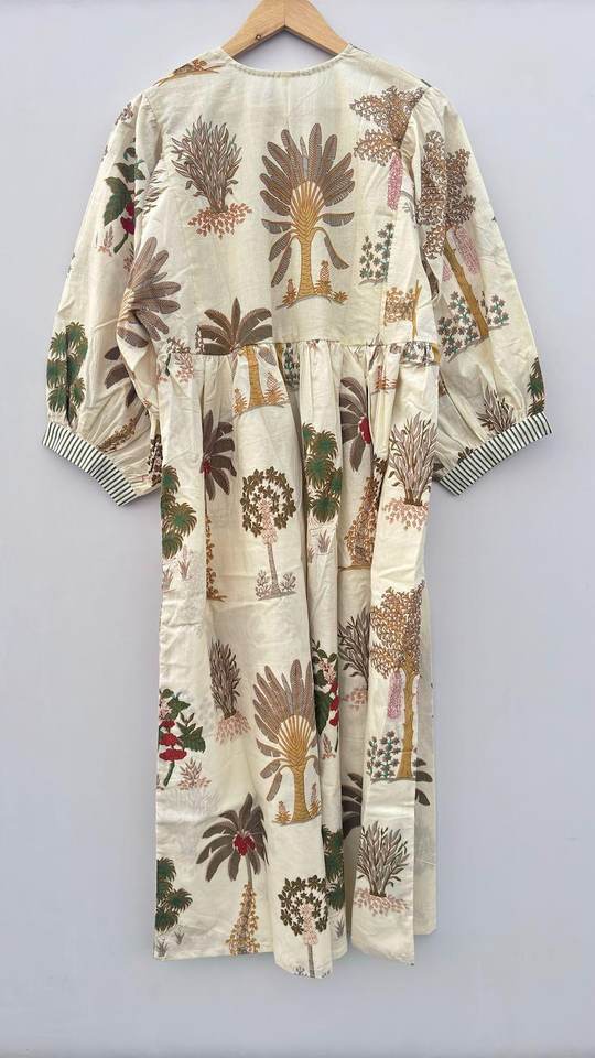 Handblock Floral Cotton Dress for Women Midi Mini or Long Block Print Summer Dress Boho Flower Girl or Casual Outfit