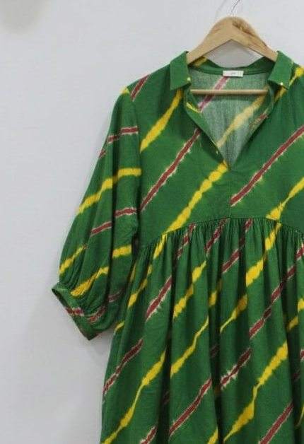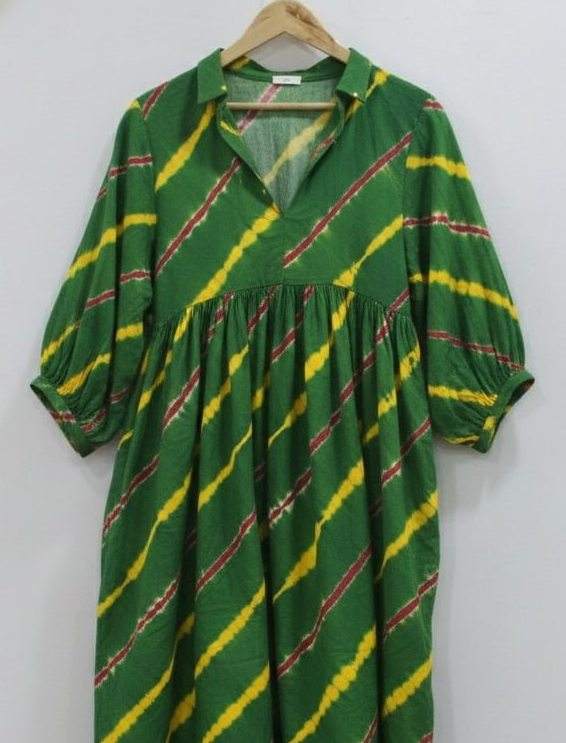 Handmade Tie Dye Floral Cotton Midi/Long Block Print Summer Dress for Women Boho Casual Outfit