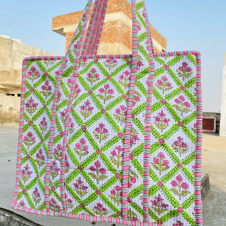 Handblock Print Quilted Tote Bag | Eco-Friendly Cotton Tote | Sustainable Handmade Bag