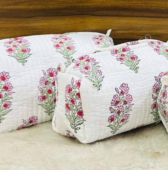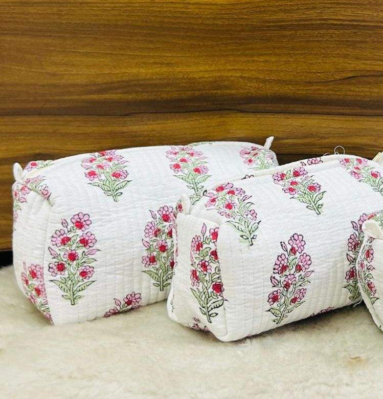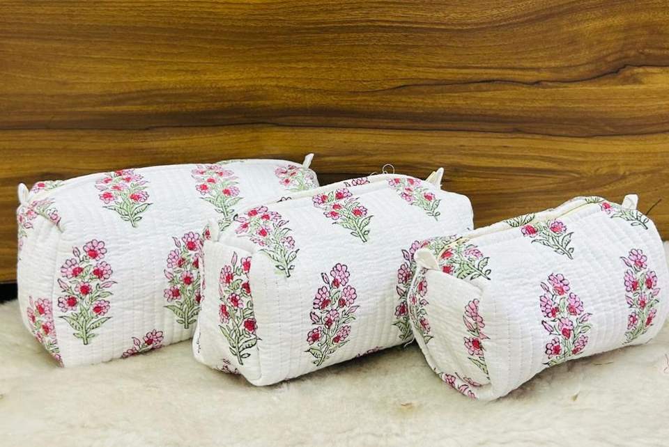 Handblock Printed Set of 3 Multipurpose Storage Bags (Large Medium Small)
