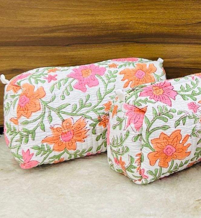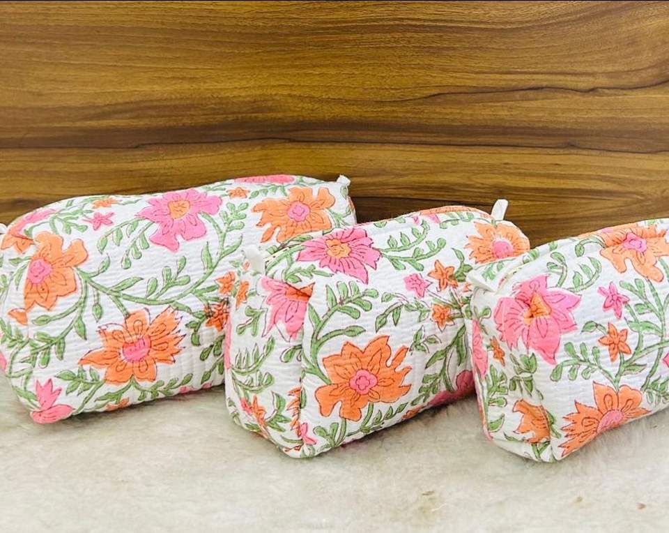 Handblock Printed Set of 3 Multipurpose Storage Bags (Large Medium Small)