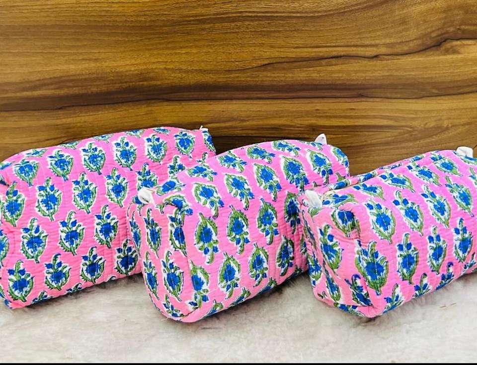 Handblock Printed Set of 3 Multipurpose Pouch (Large, Medium, and Small)
