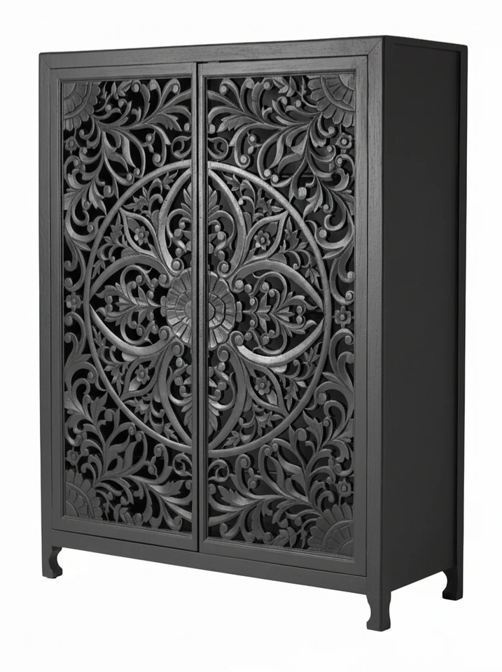 Handcarved Solid Teak Wood Modern Luxury Wardrobe Armoire Intricate Floral Carving Home Furniture Storage Apartment Furniture
