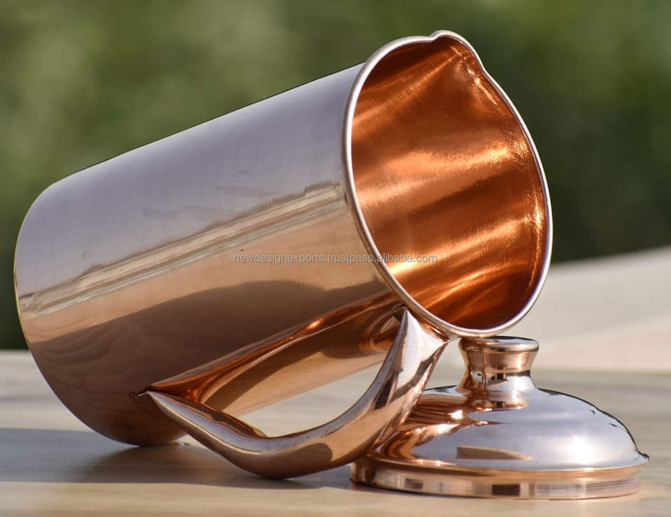 Handcrafted 1.5 Liter Pure Copper Jug with Custom Metal Lid Ayurvedic Health Benefits Disposable Water Pitcher for Drinking