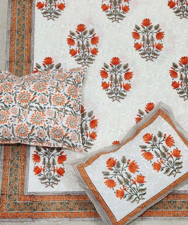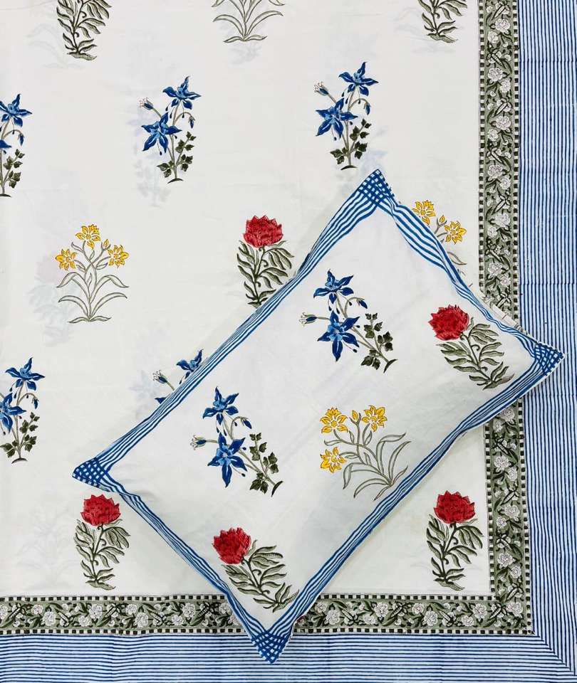 Handcrafted 100% Cotton Jaipuri Bedsheet With Border Design Hand Block Printed Soft Cotton Bedsheet With Pillow Cover Set
