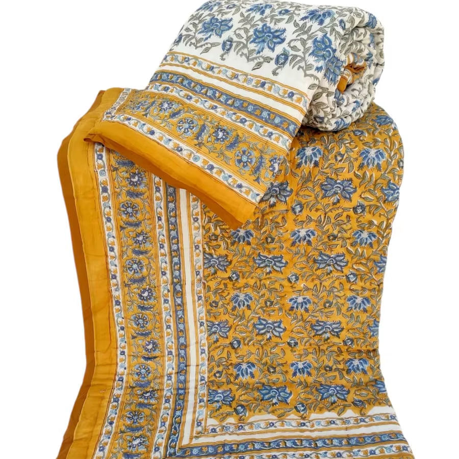 Handcrafted 100% Cotton Reversible Queen Size Bed Quilt Hand Block Printed Traditional Comfortable Lightweight Winter Cover